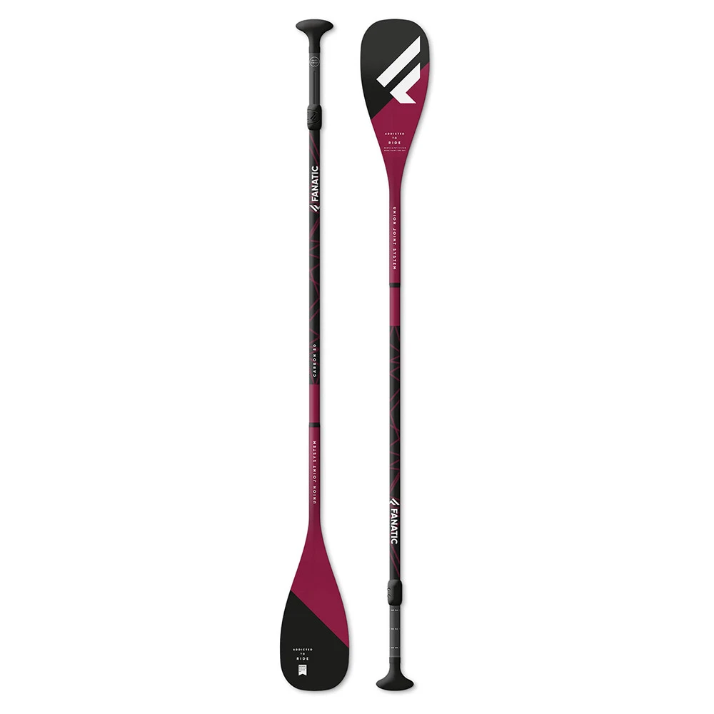 La pagaie de SUP Fanatic Carbon 80 est un modèle vario haute performance destiné aux rameurs à la recherche d’une rame efficace. Le système Union Joint garanti un flex constant sur toute la longueur de la pagaie. Elle offre un flex et une réactivité inégalée grâce à sa pale à 80% de carbone bénéficiant d’une protection ABS intégrée et d’un manche au revêtement additionnel en Kevlar. Le système Anti Twist assure que la poignée et la pale soient en permanence parfaitement alignées.
